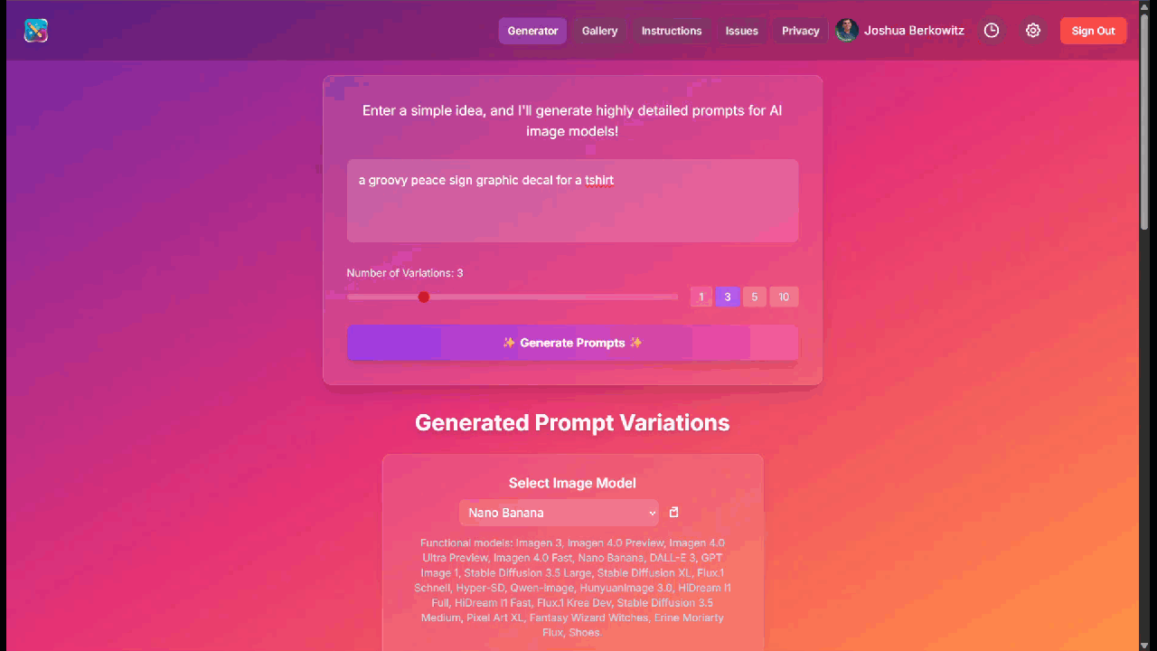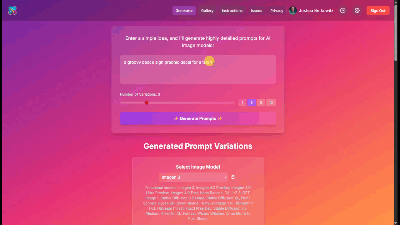 Stop juggling apps to find the perfect prompt with the perfect model. Prompt maker, makes it easy to create great prompts and images!