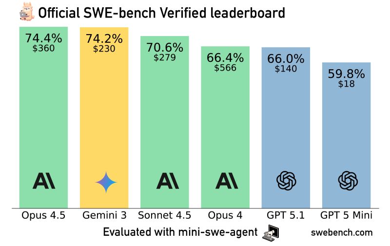 Image Credit: View Kilian Lieret (Princeton Researcher - LinkedIn). It is interesting to this author that Anthropic's evaluation appears to have cherry picked the results to create a larger gap between Gemini 3 and Opus 4.5. Which result do you trust, any of them? Personally, until I put the model to the test in my own workflows, these benchmarks mean very little any longer.