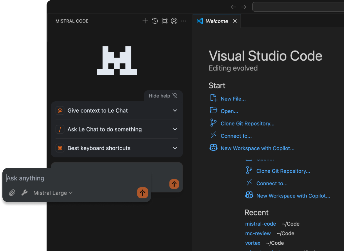 Mistral Code brings all these capabilities directly to JetBrains and VS Code environments. Developers benefit from: