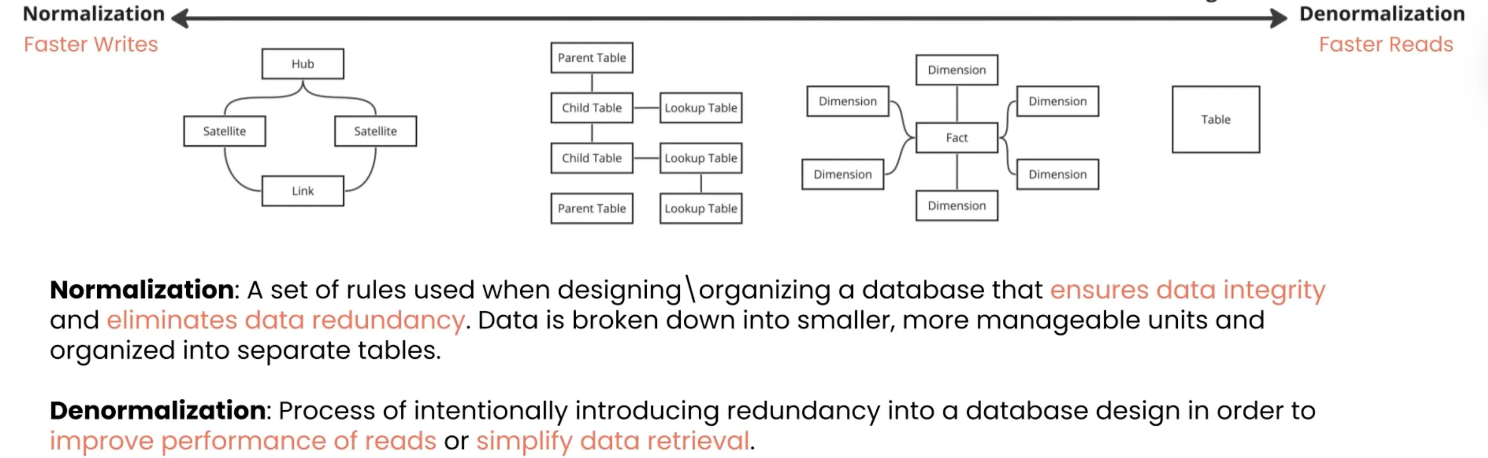 - Third Normal Form: Minimizes redundancy and is efficient for storage, but querying for analytics can be complex.