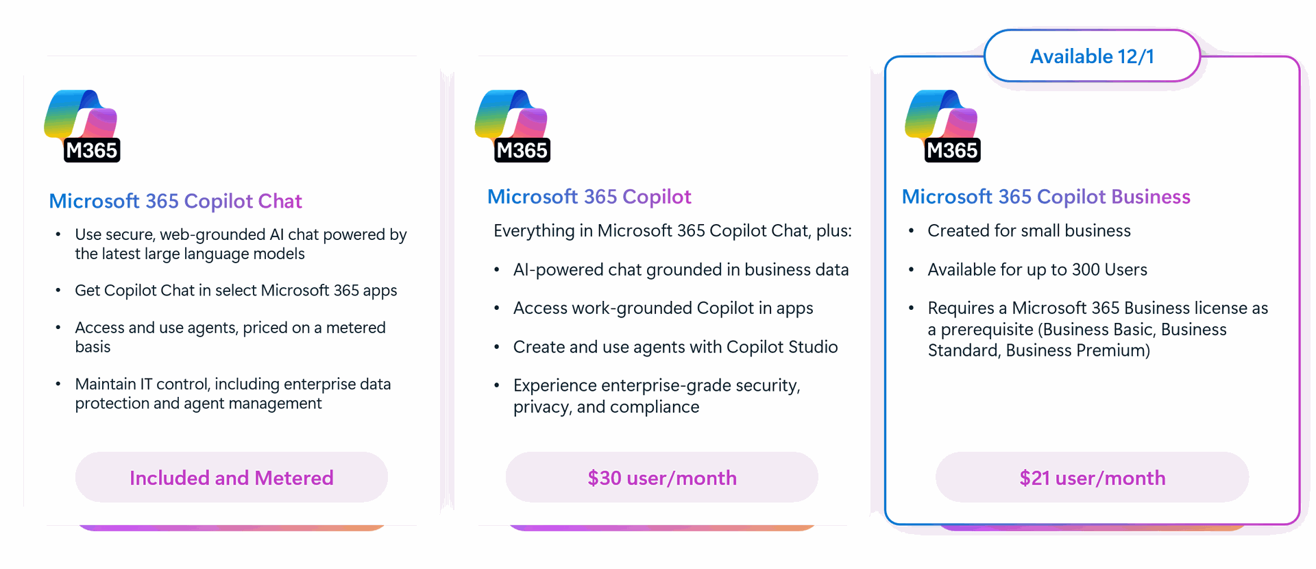 - Business Basic: Essential web and mobile apps integrated with Copilot.