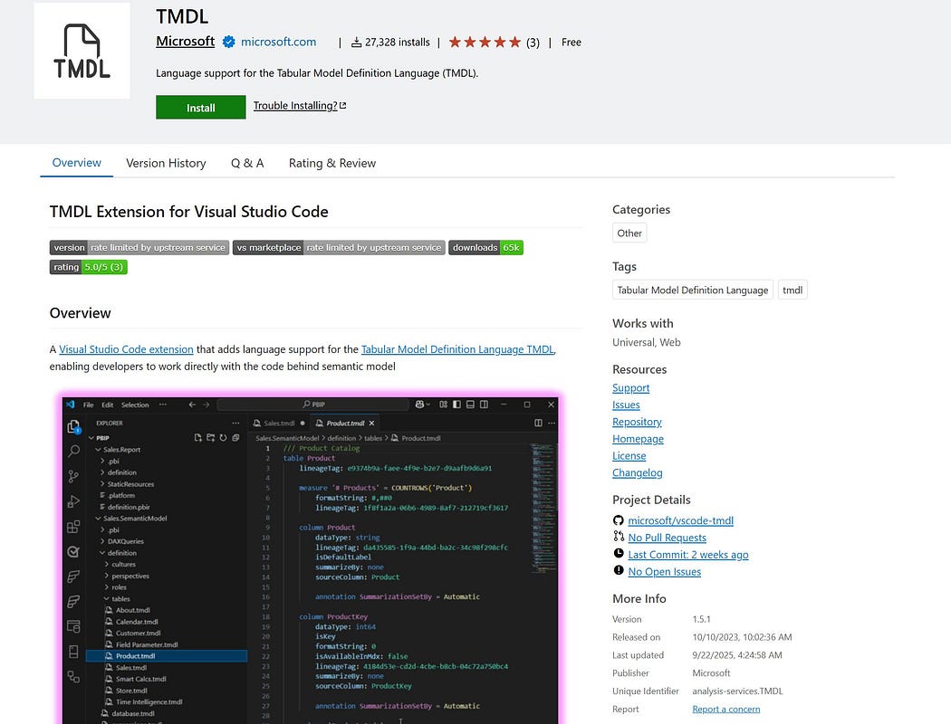 Getting started with the TMDL extension is straightforward. Download it from the Visual Studio Marketplace and integrate it into your workflow to instantly experience the upgraded authoring environment. Whether building new semantic models or managing existing ones, the extension supports your productivity from day one.