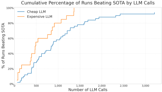 The meta-analyses revealed surprising insights about model selection and resource allocation. Comparing high-end versus economical LLMs on simple problems like autocorrelation inequalities showed that while powerful models generated higher-quality suggestions faster, the most cost-effective strategy for basic optimization often involved running many experiments with cheaper models to maximize diversity.